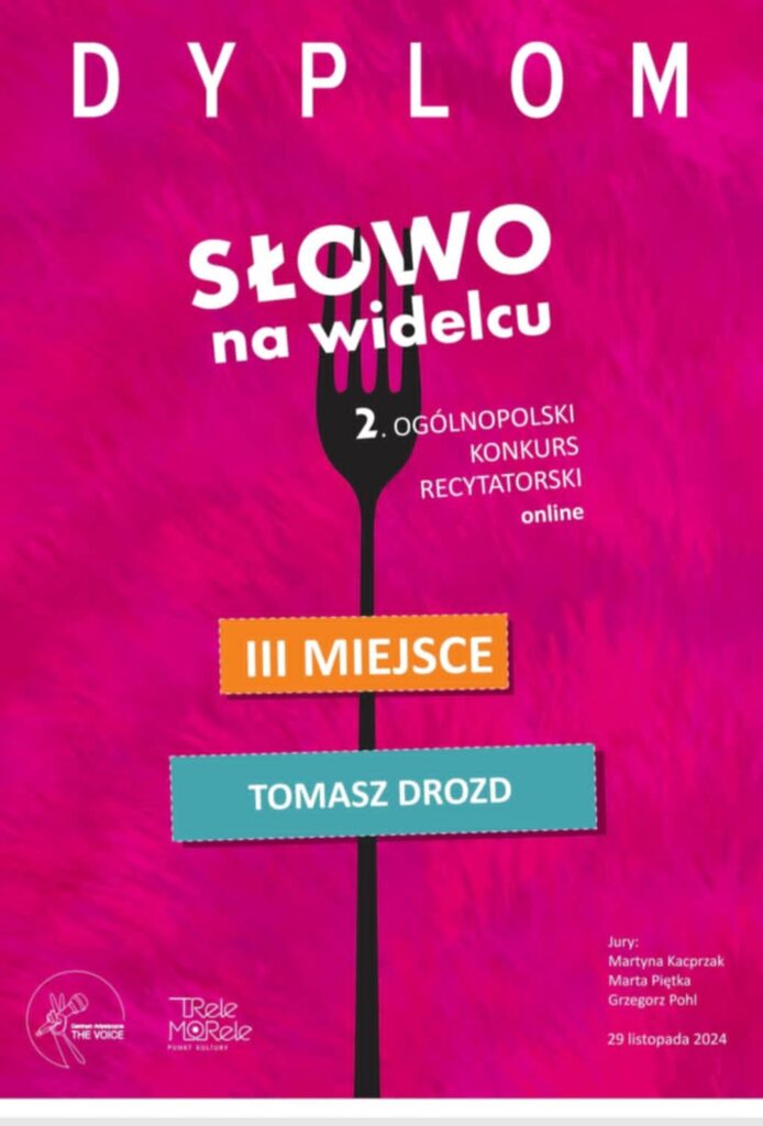 Tomek Drozd z kl. 4 d zajął III miejsce w 2. Ogólnopolskim Konkursie Recytatorskim „Słowo na widelcu”.