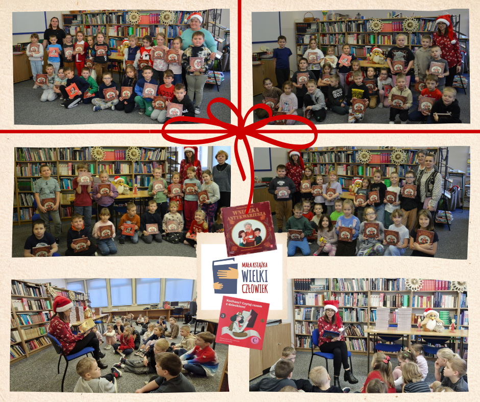 W związku z kolejną edycją ogólnopolskiej kampanii „Mała książka – wielki człowiekˮ ogłoszoną przez Instytut Książki nasi pierwszoklasiści otrzymali wyprawki czytelnicze zawierające dwie publikacje: książkę Justyny Bednarek „Wnuczka antykwariuszaˮ oraz broszurę dla rodziców „Kochasz? Czytaj razem z dzieckiem!ˮ. Wręczenie wyprawek odbyło się w miniony wtorek w bibliotece szkolnej. Towarzyszyło mu przygotowane na tę okoliczność spotkanie czytelnicze. Uczniowie wysłuchali świątecznego opowiadania „Trzy życzeniaˮ i wzięli udział w rozmowie na temat najpiękniejszych prezentów, jakie możemy komuś podarować. Okazało się, że najmłodsi wychowankowie naszej szkoły bardzo dobrze rozumieją, iż najważniejsze są nie upominki materialne, ale wszelkie gesty empatii i dobroci, które mają moc uszczęśliwiania innych.