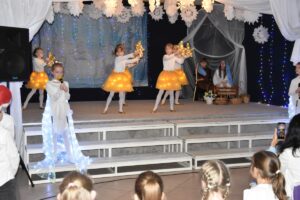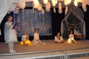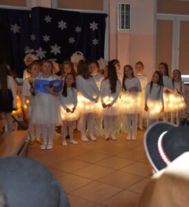 Występ urozmaicały piękne piosenki oraz nastrojowa muzyka, które podkreślały przesłanie przedstawienia – radość, dobroć i nadzieję płynącą z nadchodzących Świąt Bożego Narodzenia. Aktorzy z wielkim zaangażowaniem wcielili się w swoje role, a ich śpiew i gra aktorska zostały nagrodzone gromkimi brawami.