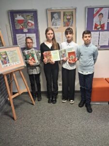 6 maja 2025r. w Miejskiej Bibliotece Publicznej odbył się finał konkursu “Literaccy Władcy w Roku Milenium Koronacji Dwóch Pierwszych Królów Polski”  W 2025 roku przypada 1000. rocznica koronacji dwóch pierwszych królów naszego państwa: Bolesława Chrobrego oraz Mieszka II Lamberta. Z naszej szkoły wyróżnienia otrzymali: w kategorii plastyczne Hanna Stopa z klasy 6a i Maksymilian Popko z klasy 6b a kategorii literackiej Anna Chudzik z klasy 6b i Konstanty Wszendyrówny z klasy 5a. Prace można obejrzeć na wystawie pokonkursowej w Galerii Na Piętrze MBP od 6 maja do 31 sierpnia 2025r. Wyróżnionym gratulujemy.